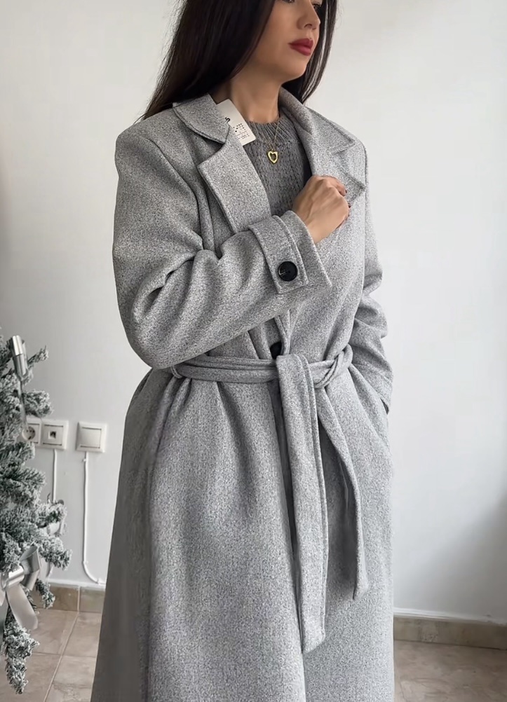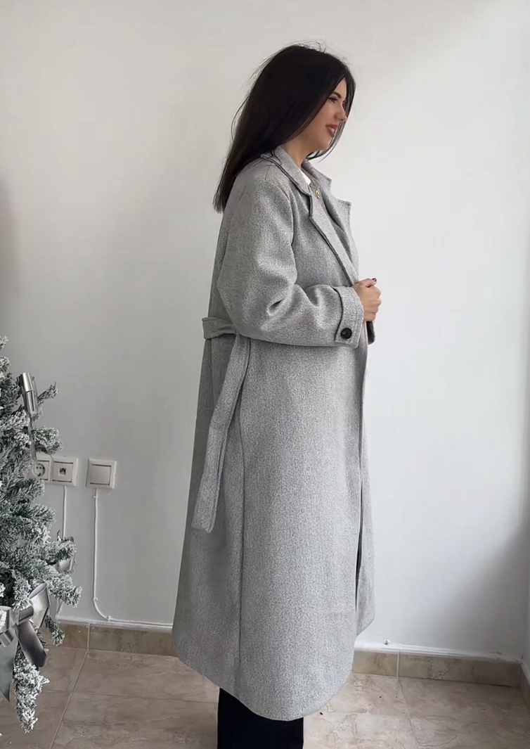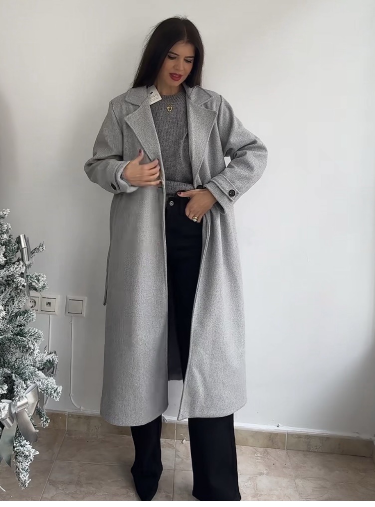 Abrigo gris jaspeado botón puños