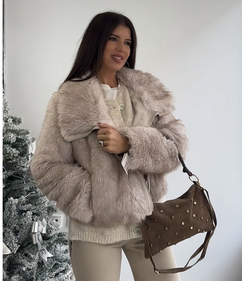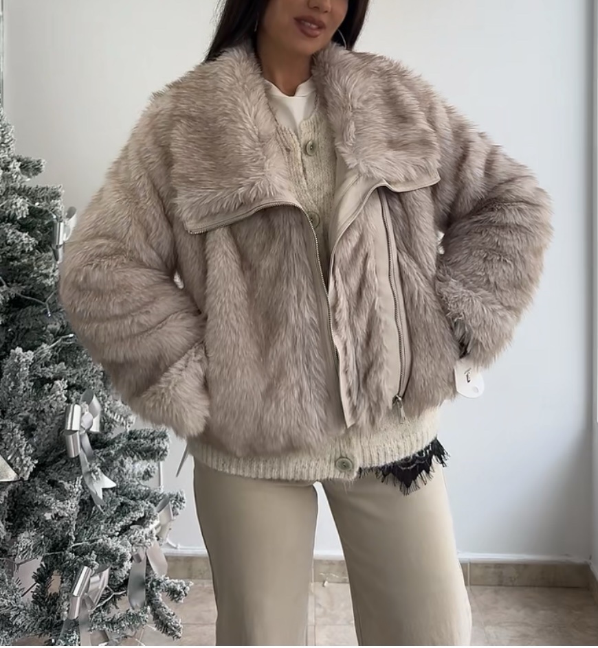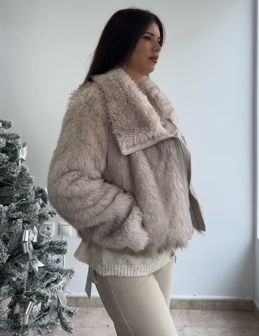 Abrigo pelo cremallera beige cantidad