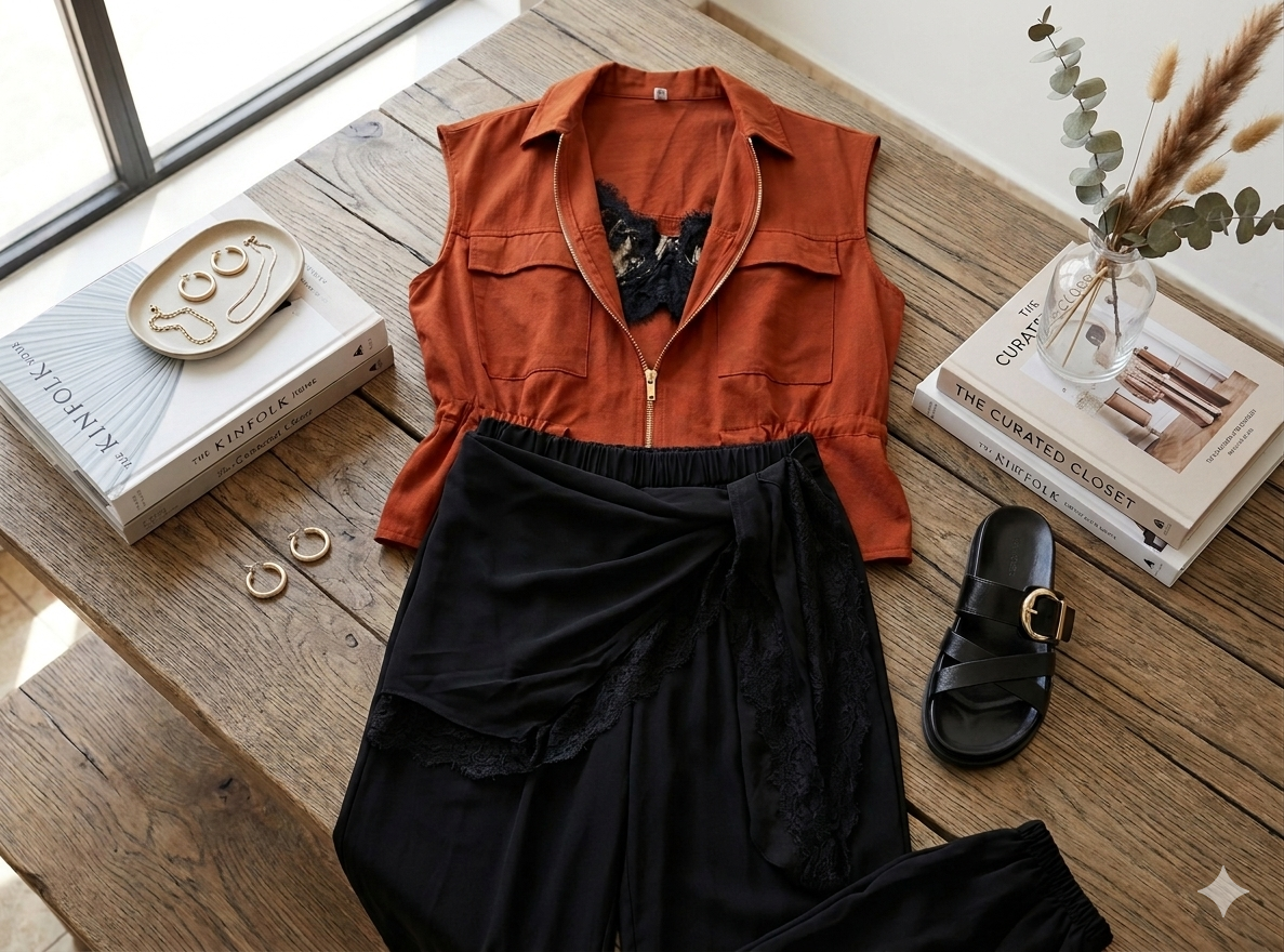 Blusa volante teja