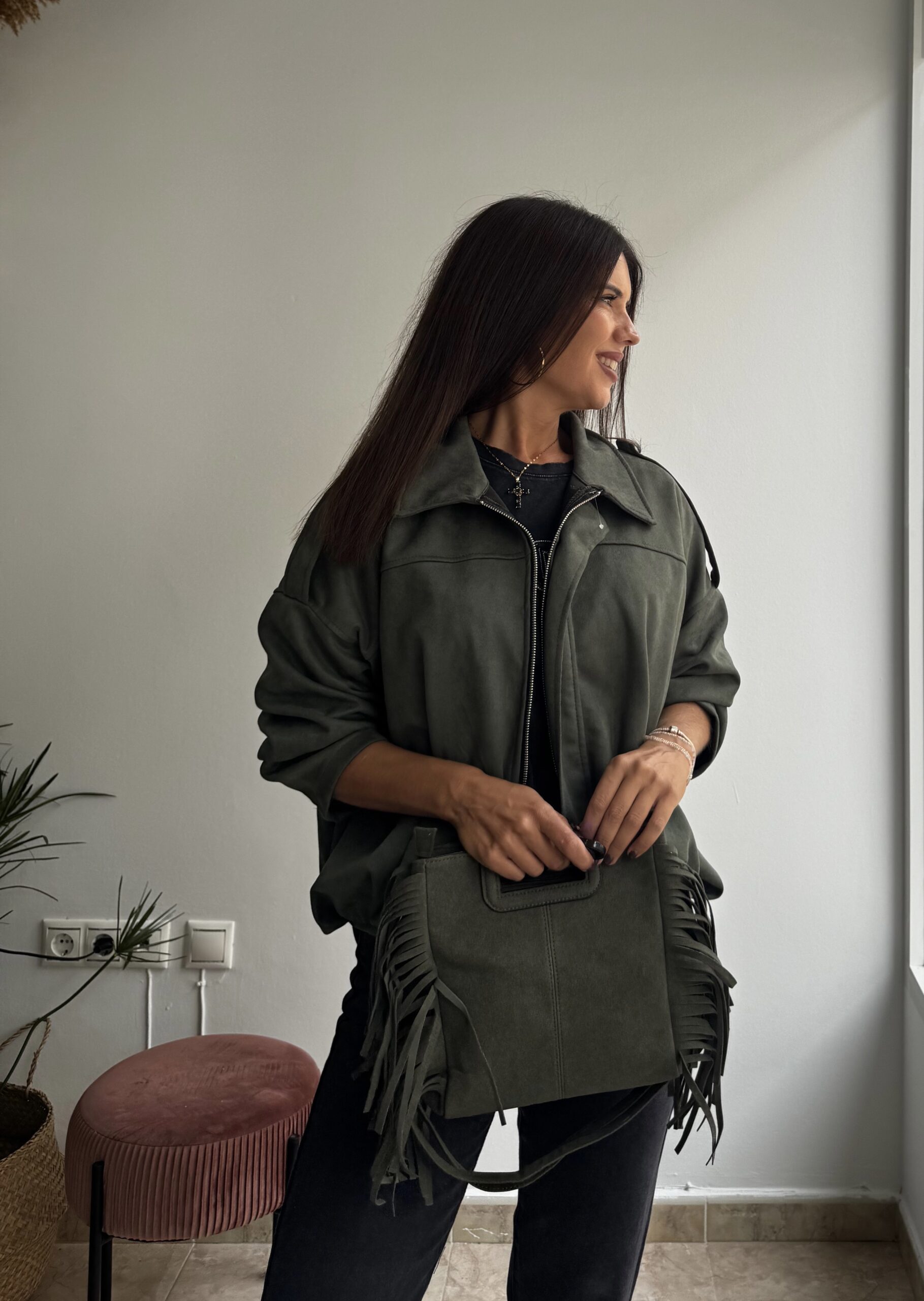 chaqueta de antelina. no esta forrada. lleva cremallera