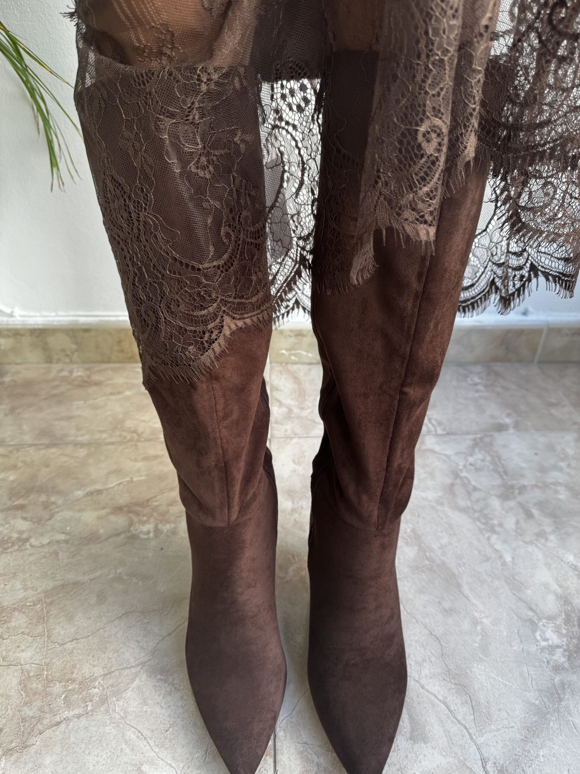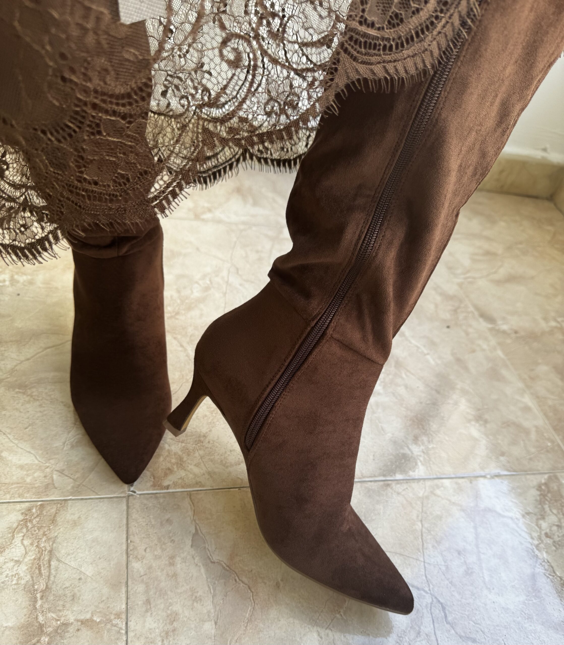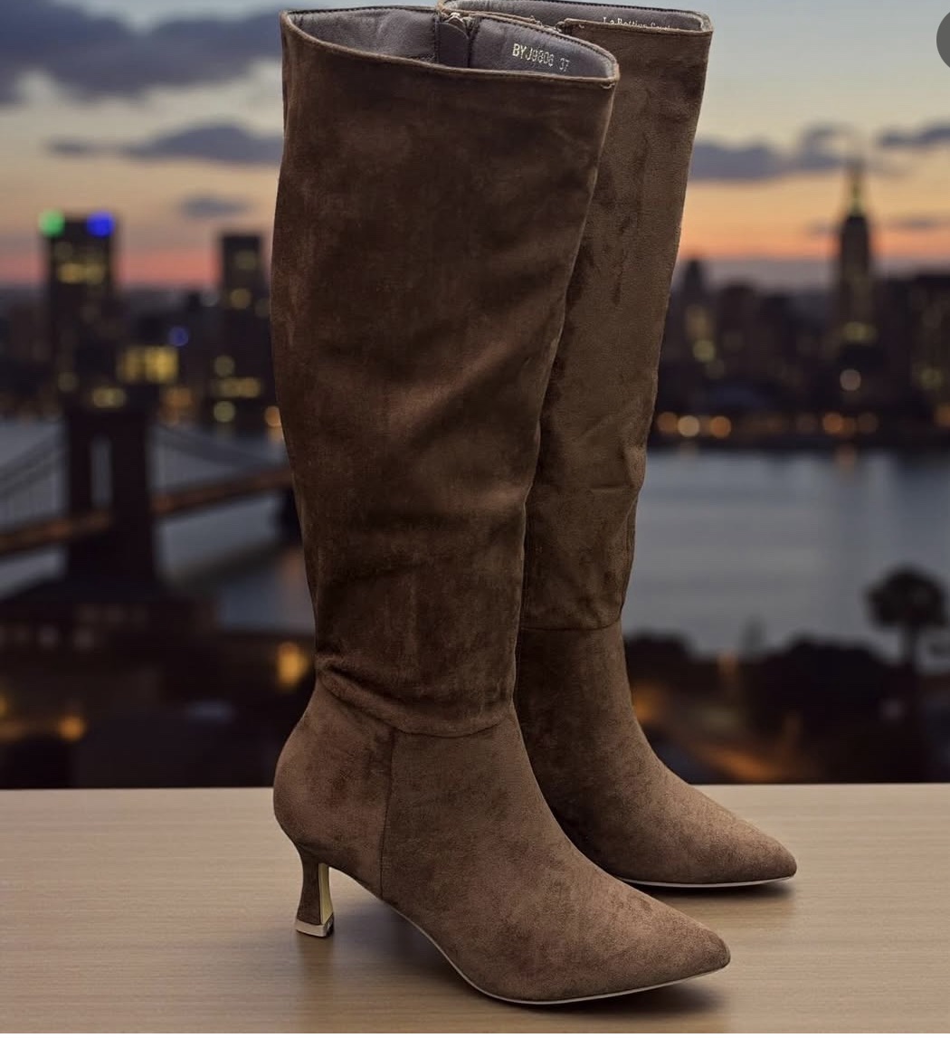 Bota alta marrón antelina cantidad
