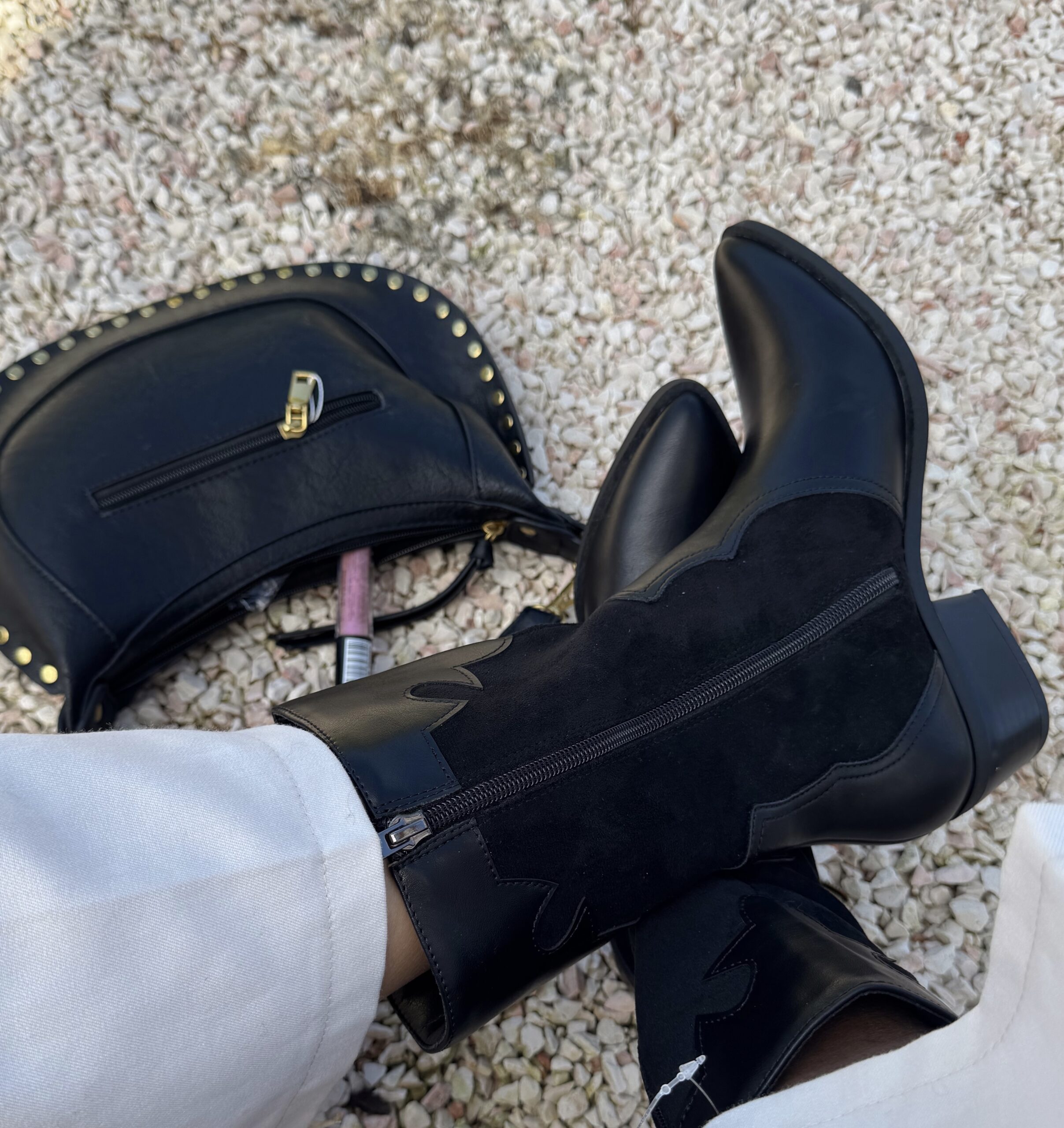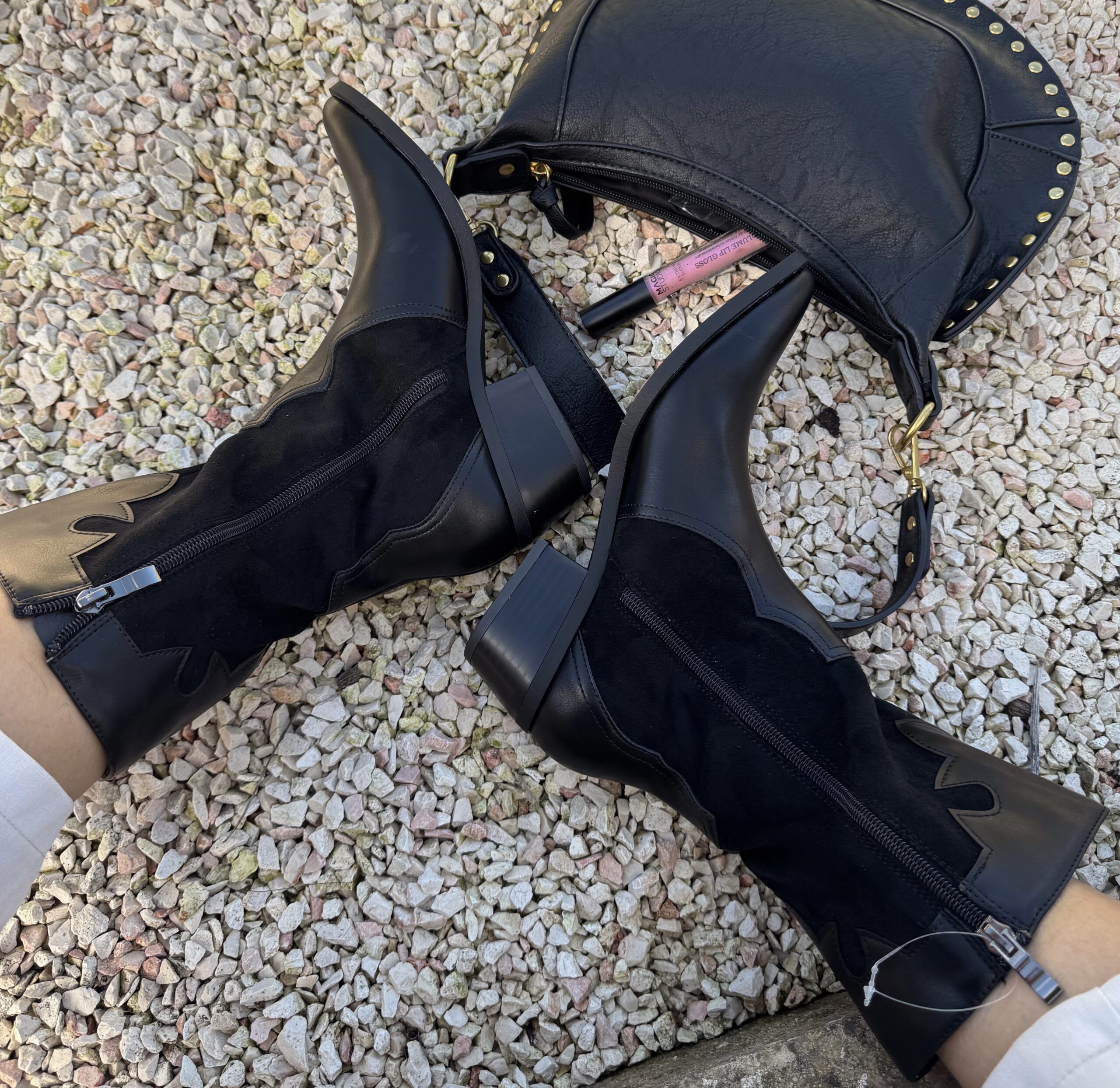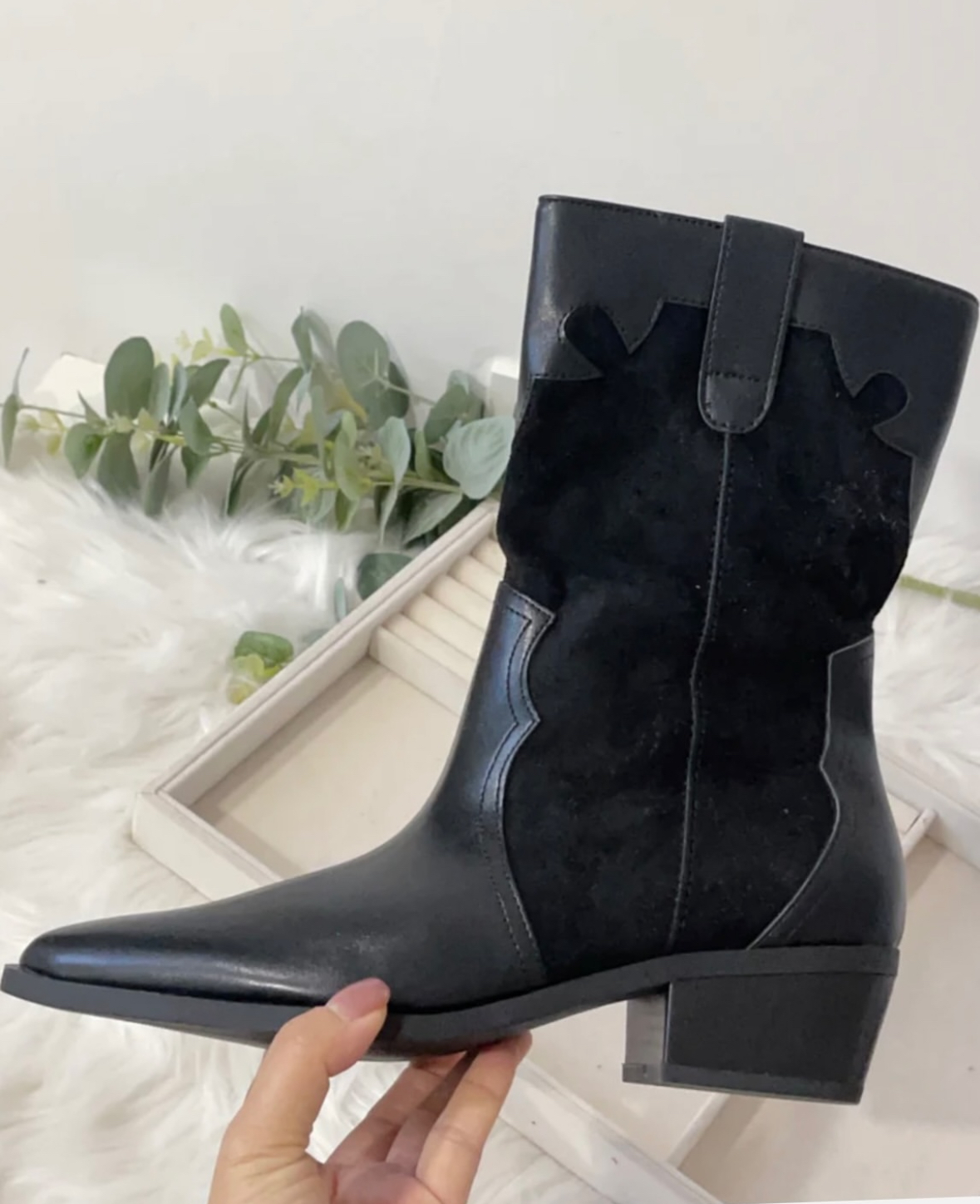 Bota cowboy de media cala. Cremallera en un lateral. Tacón de 5,5cm