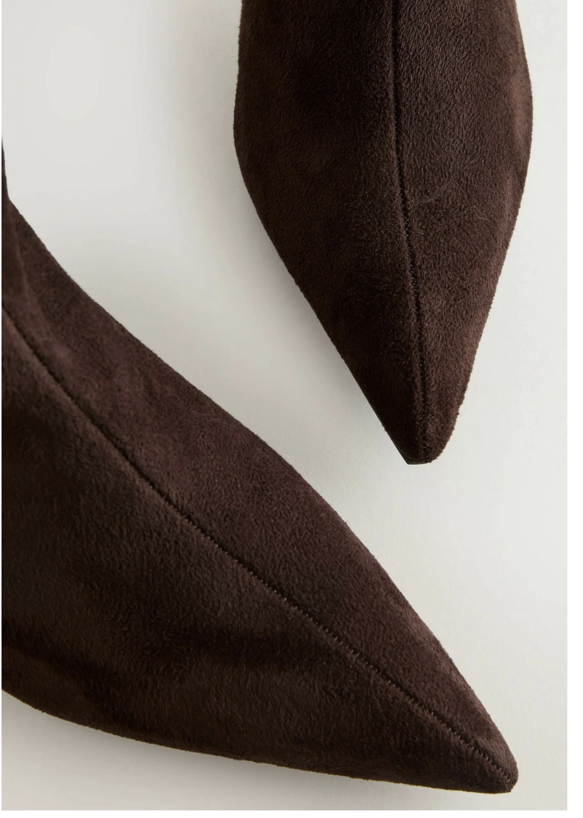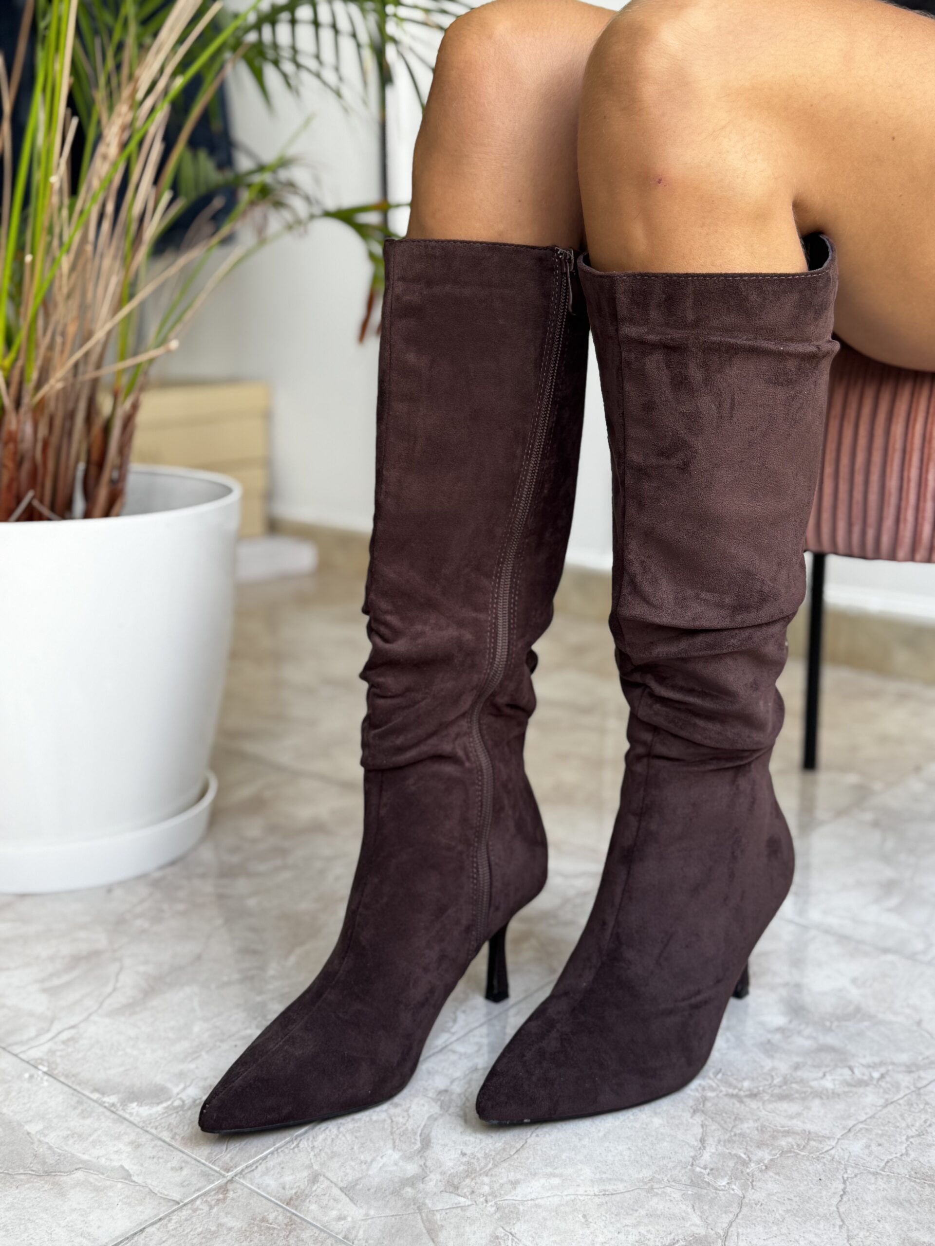 bota alta de antelina. talla perfecta numero habitual. tacon de 8cm. lleva cremallera en el lateral interior