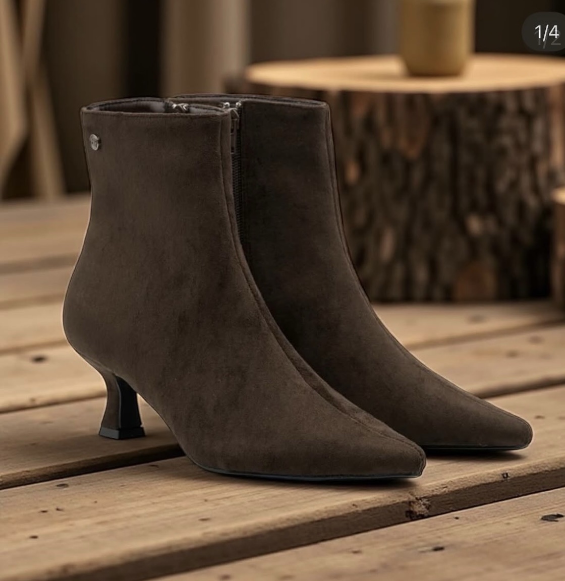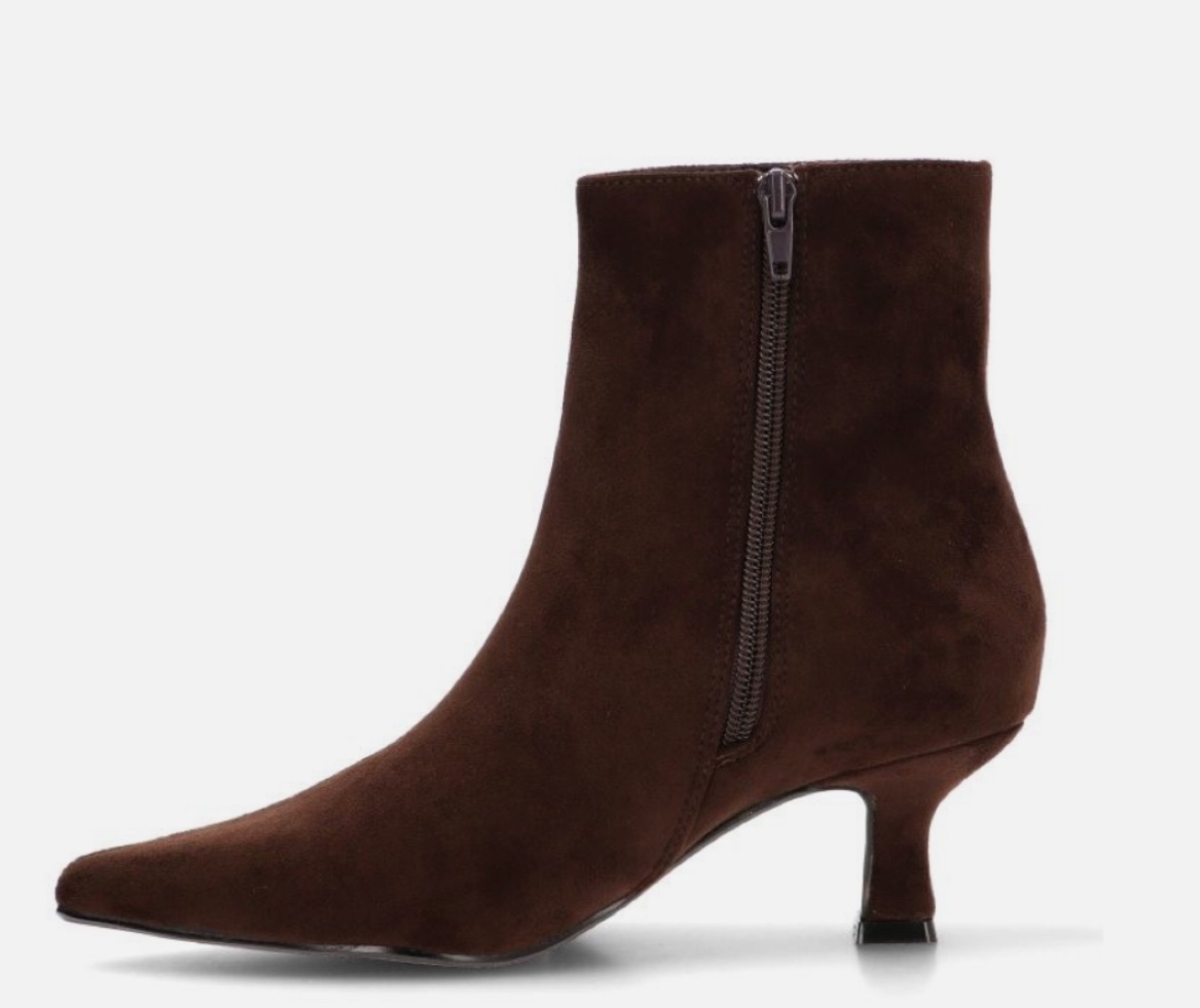 Botín marrón de ante con cremallera en la parte interior.