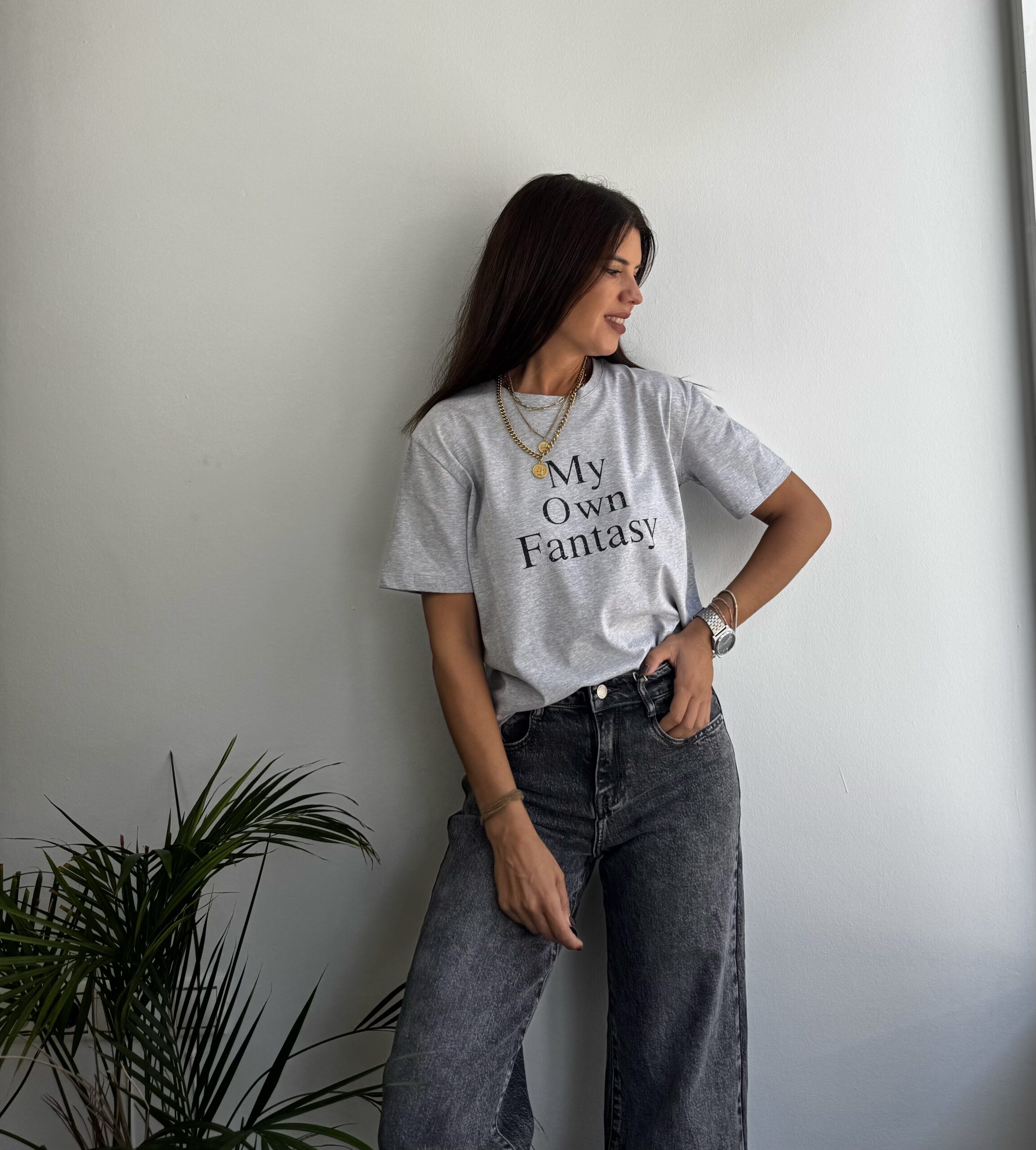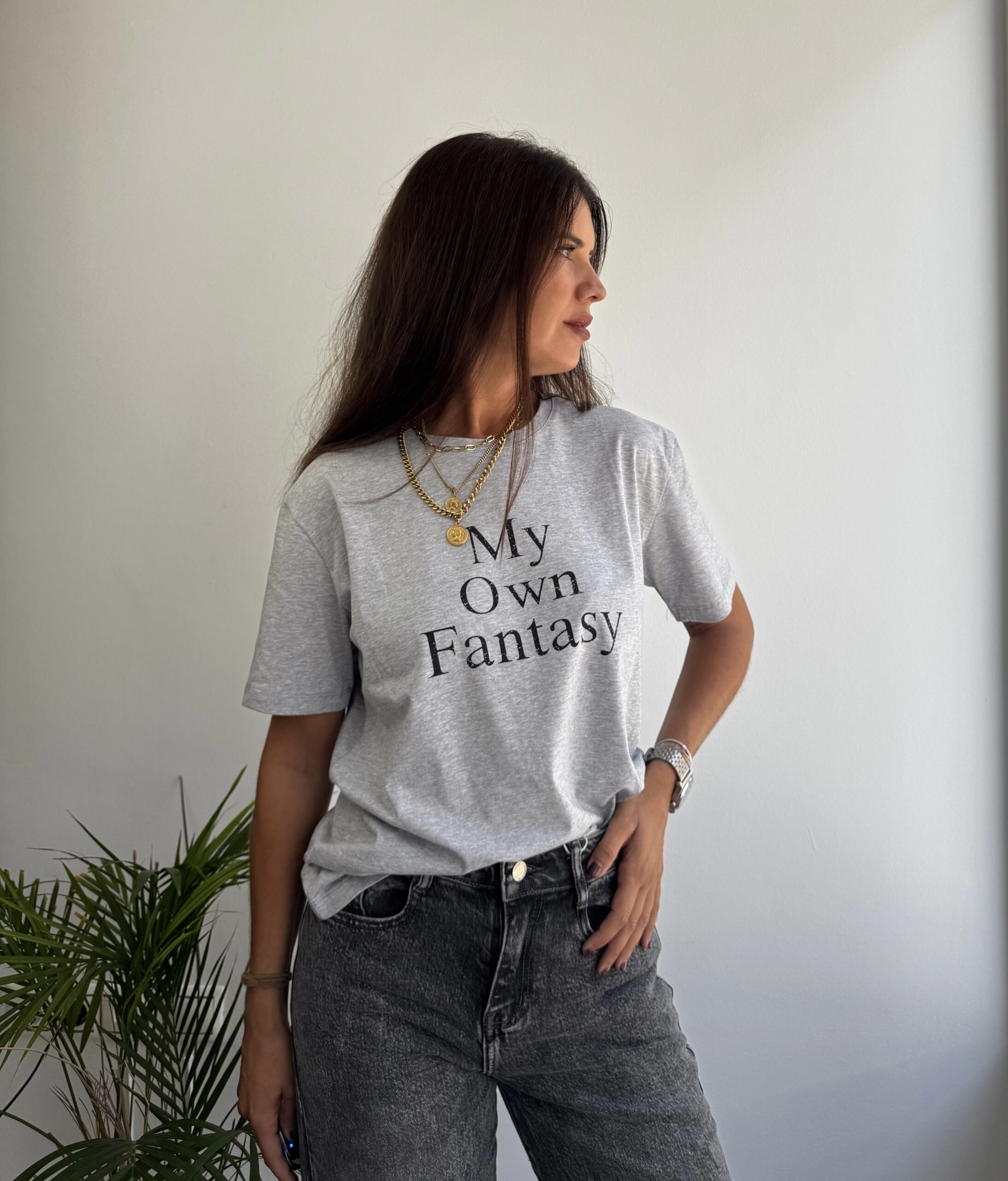 Camiseta manga corta gris letras