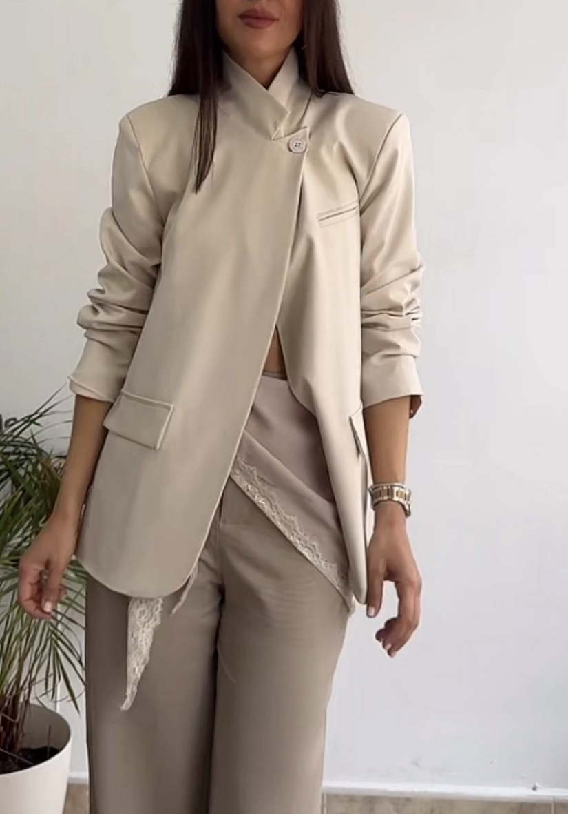 Chaqueta botón forrada. Es modelo no es oversize. Cubre hasta la 38