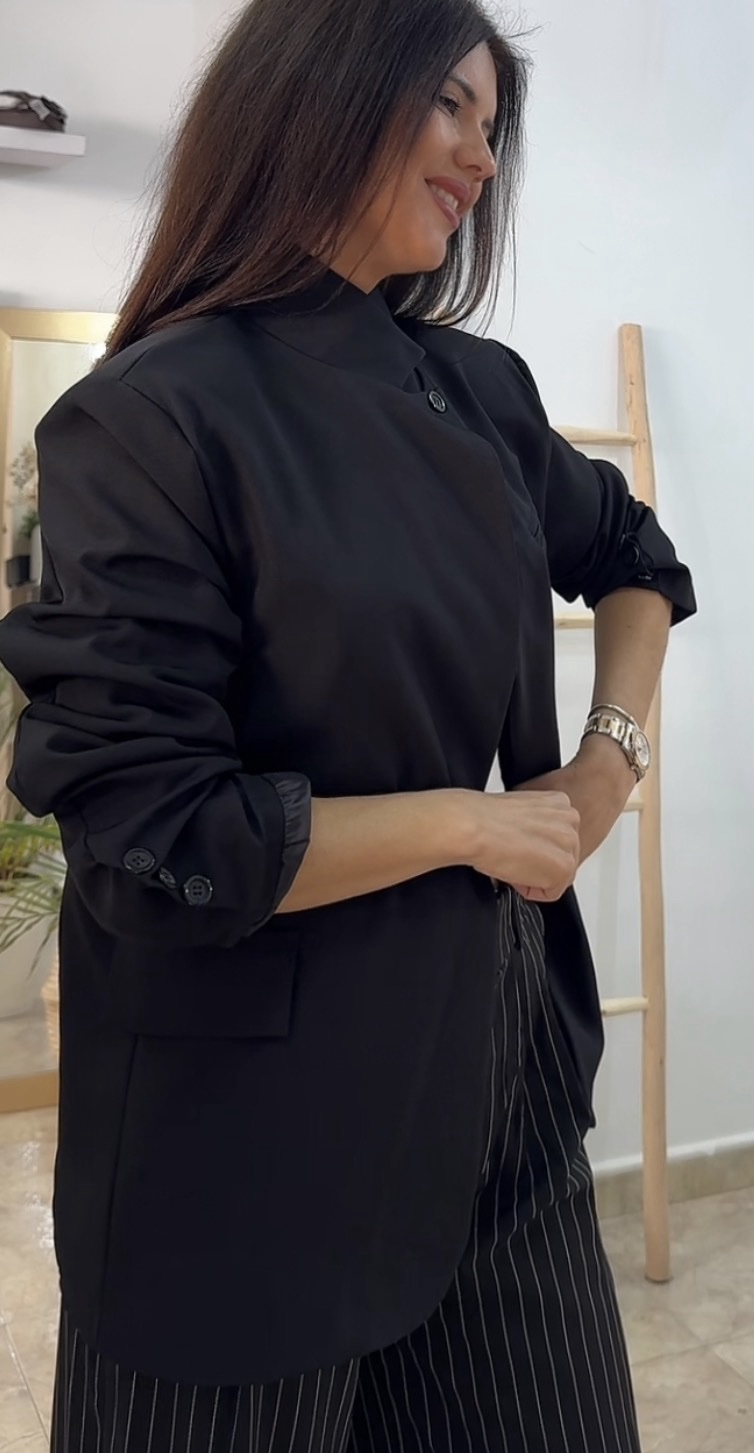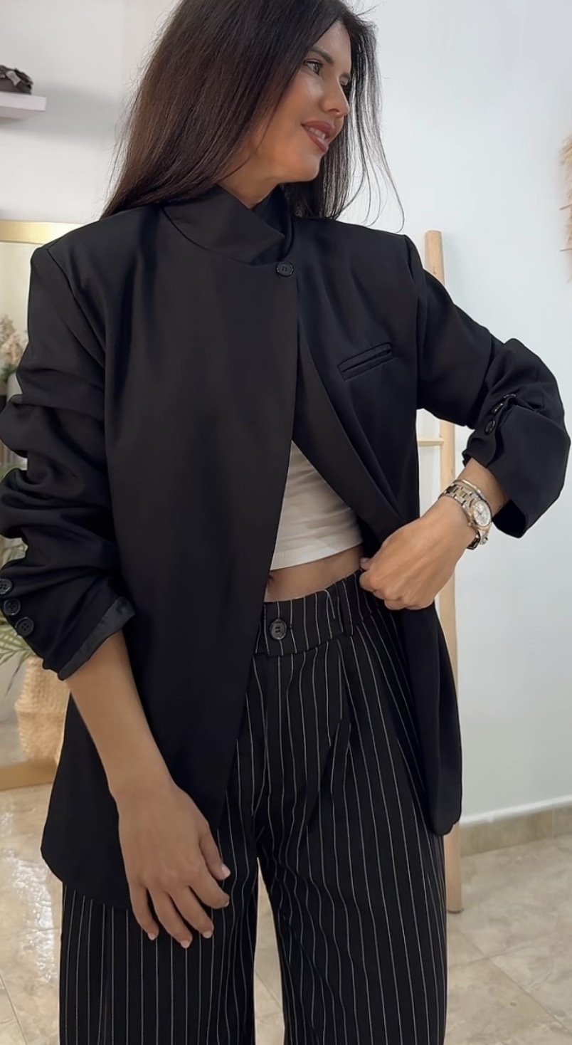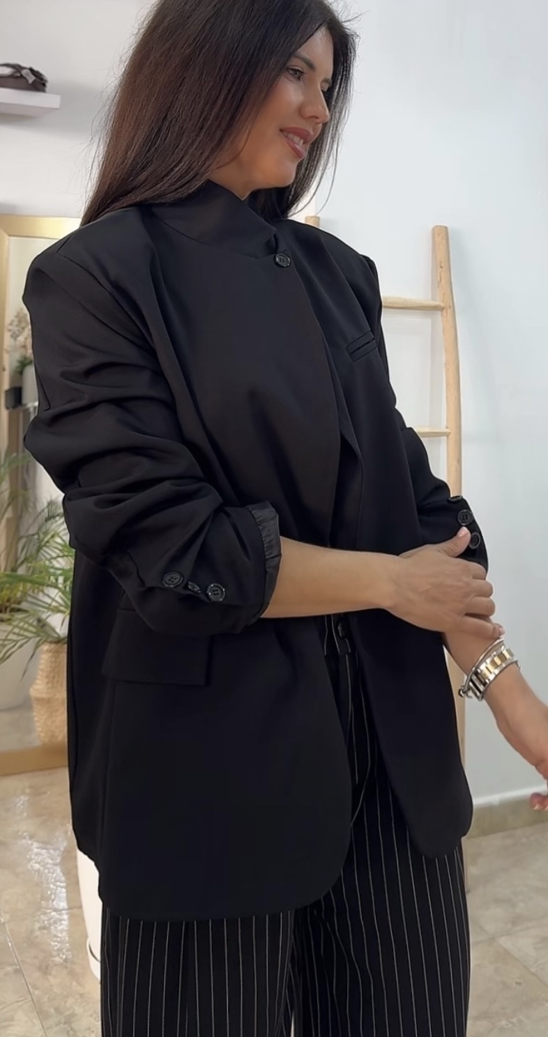 Chaqueta botón negra oversize cantidad