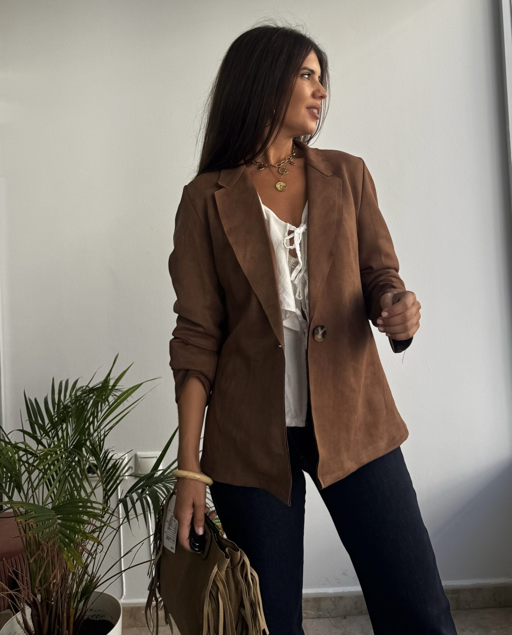 Chaqueta clásica serraje camel