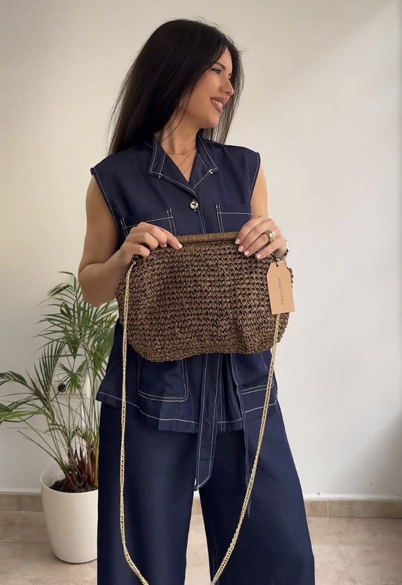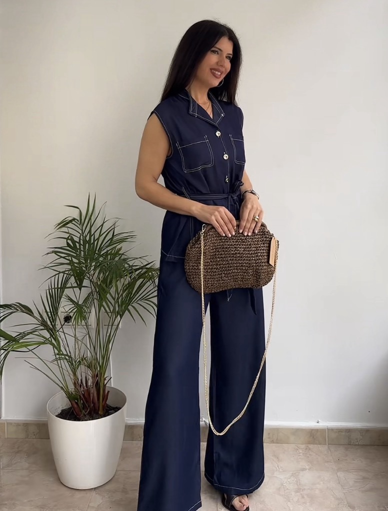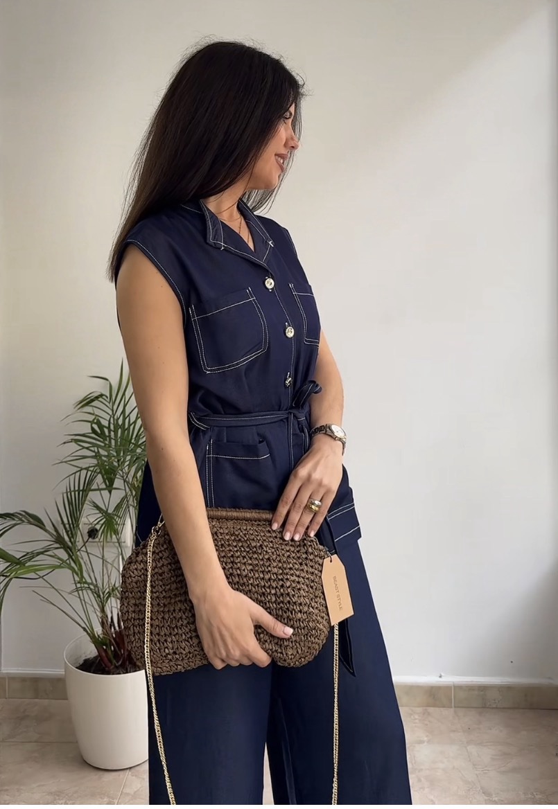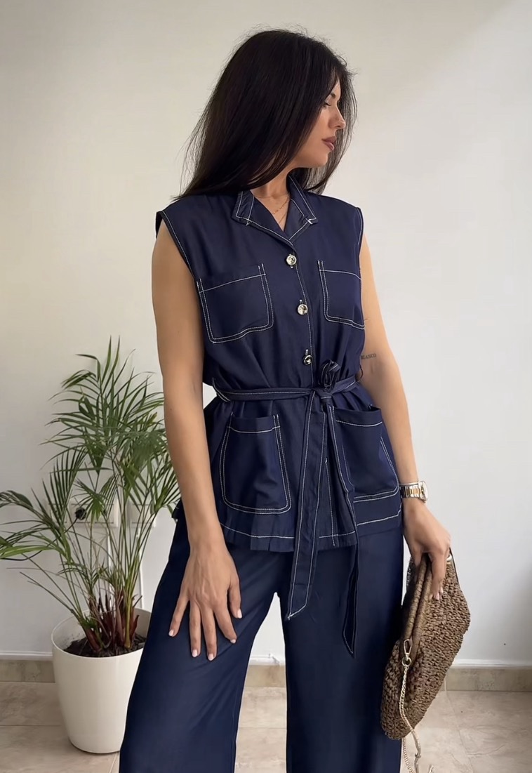 Pantalón con botones y cremallera goma elástica en la parte de atrás del pantalón.