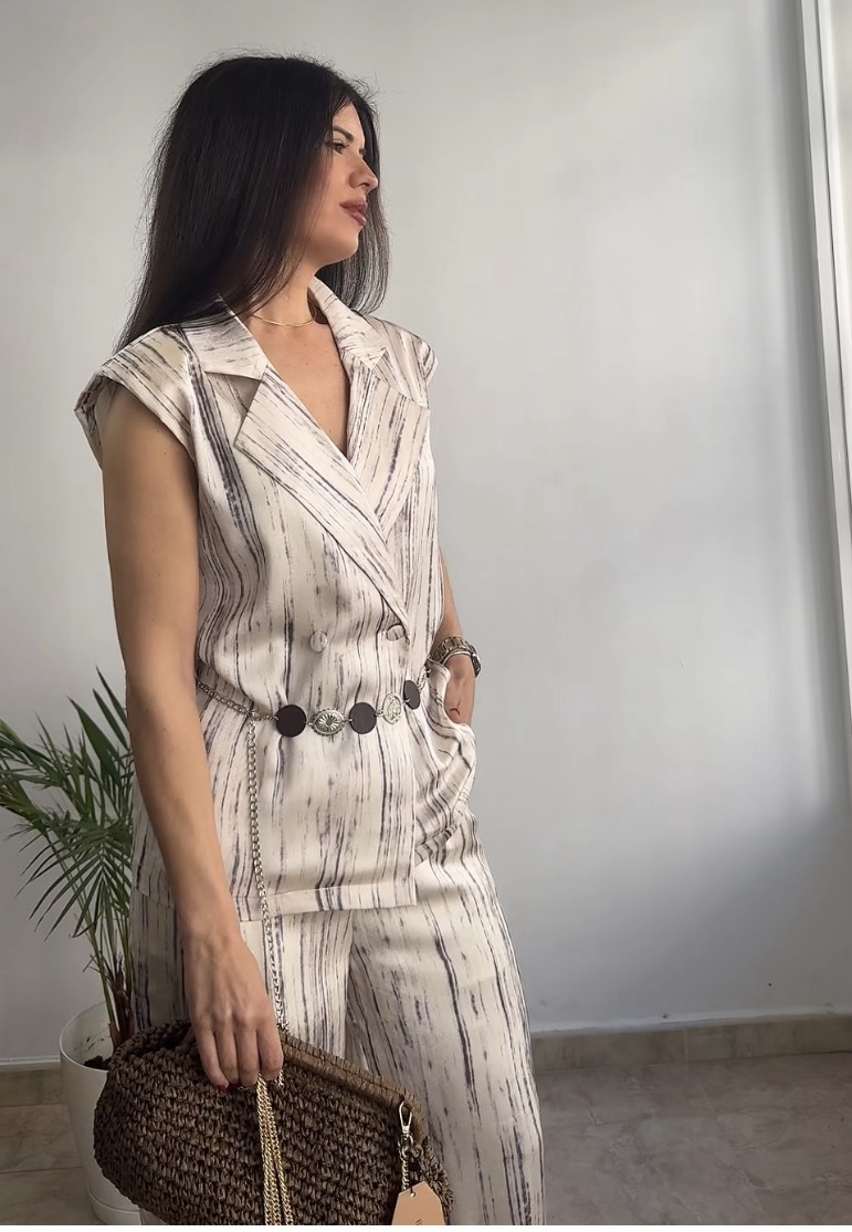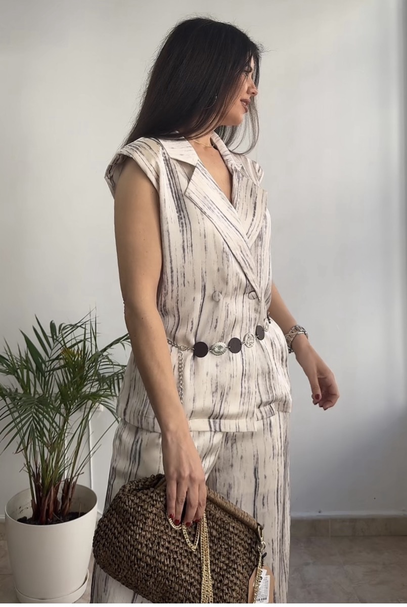 El chaleco lleva hombreras, tiene una caída excelente. Incluye cinturón