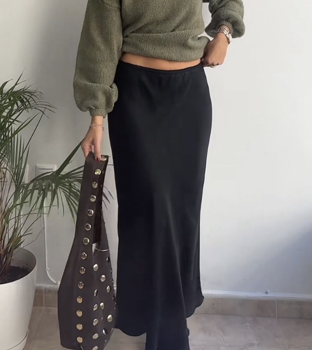 Falda satén negra