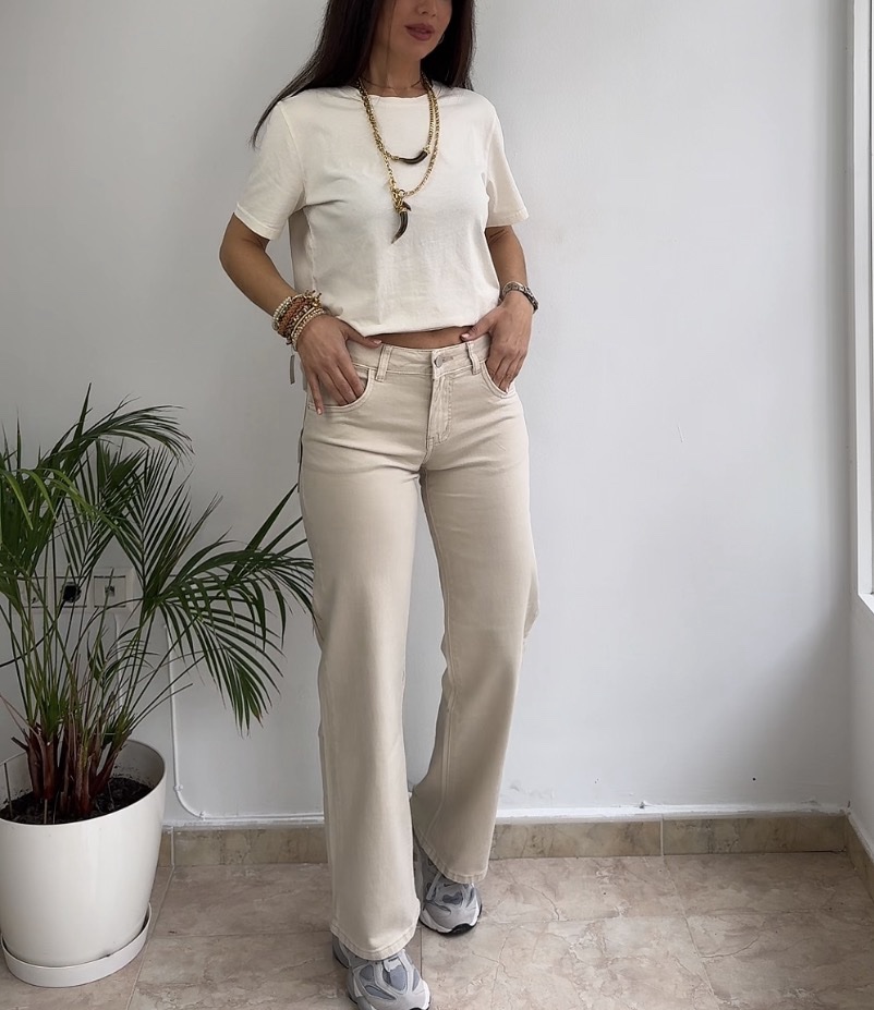 El pantalón es de talle medio.