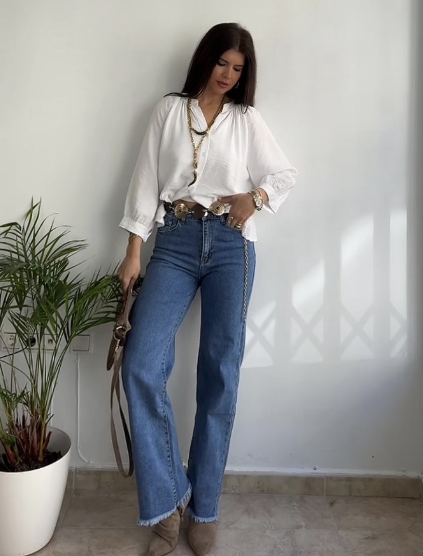 Jeans rectos desflecados