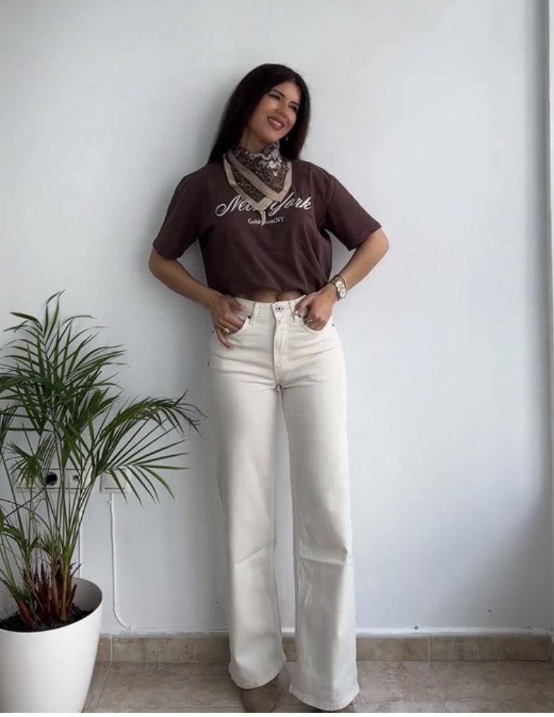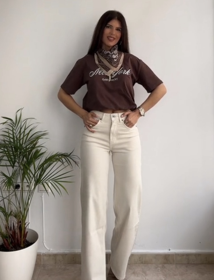 Jeans talle alto crema