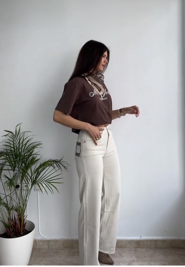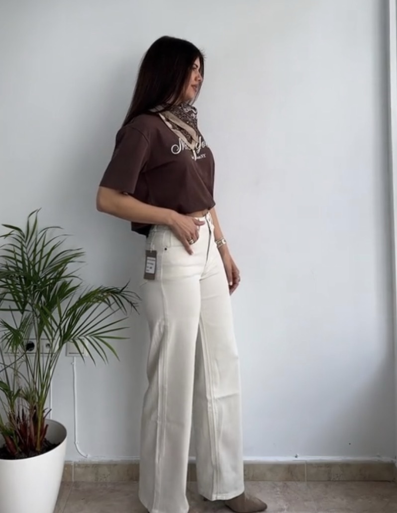 Jeans talle alto crema cantidad