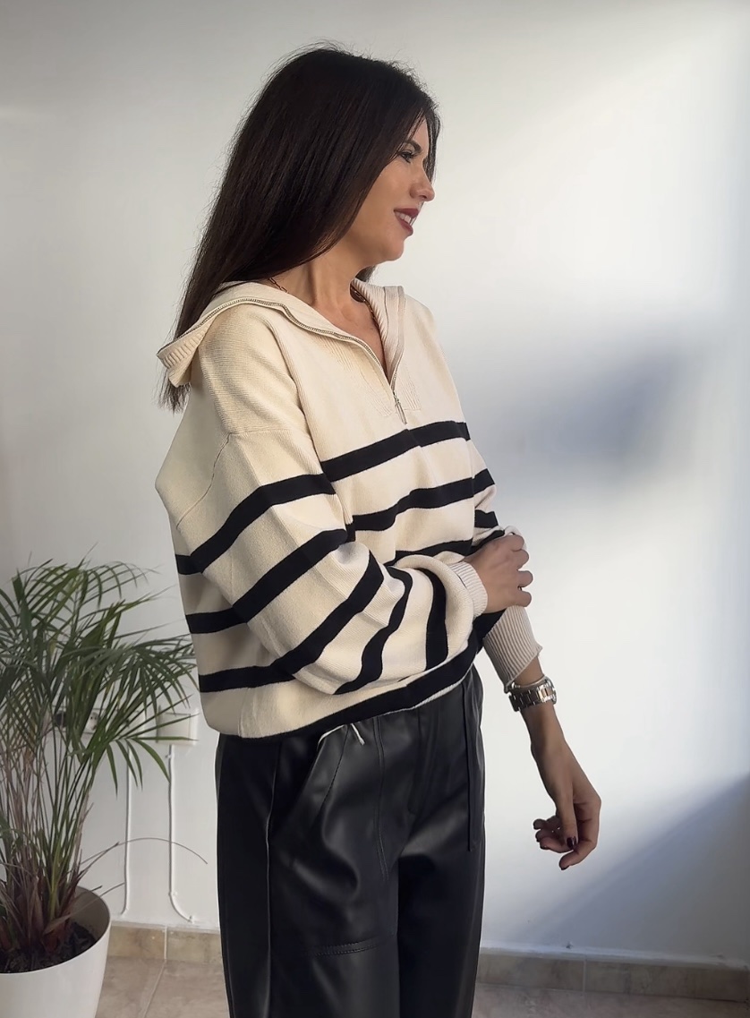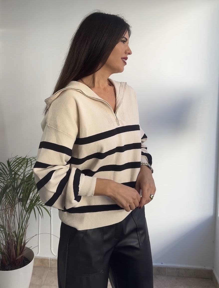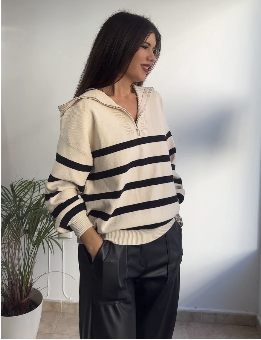 Jersey punto beige rayas negras