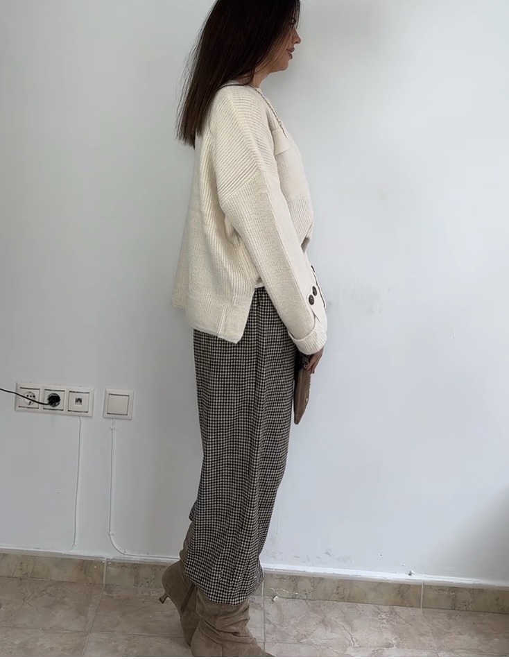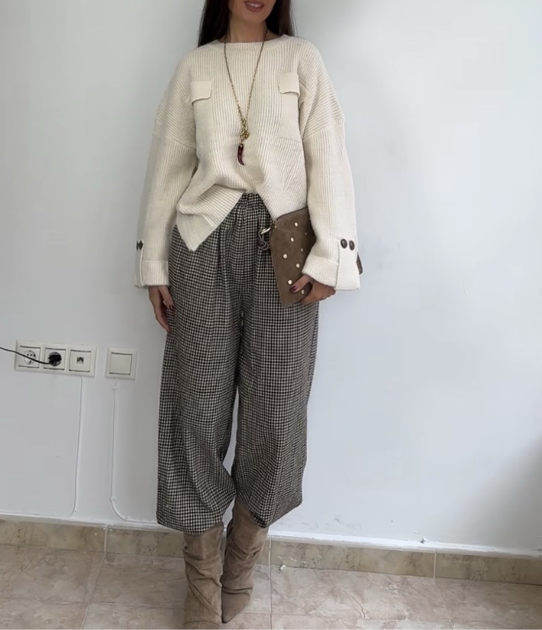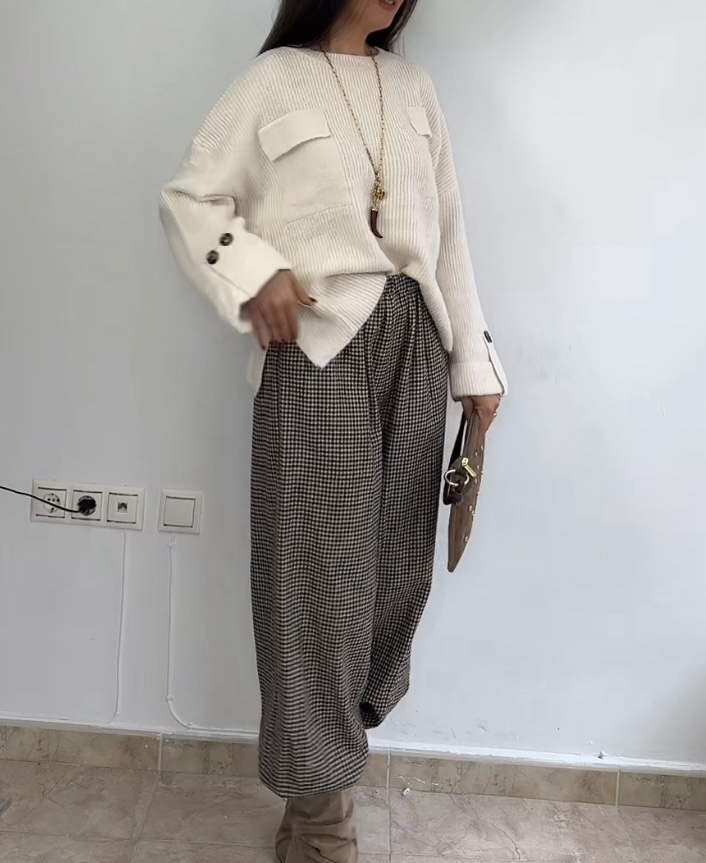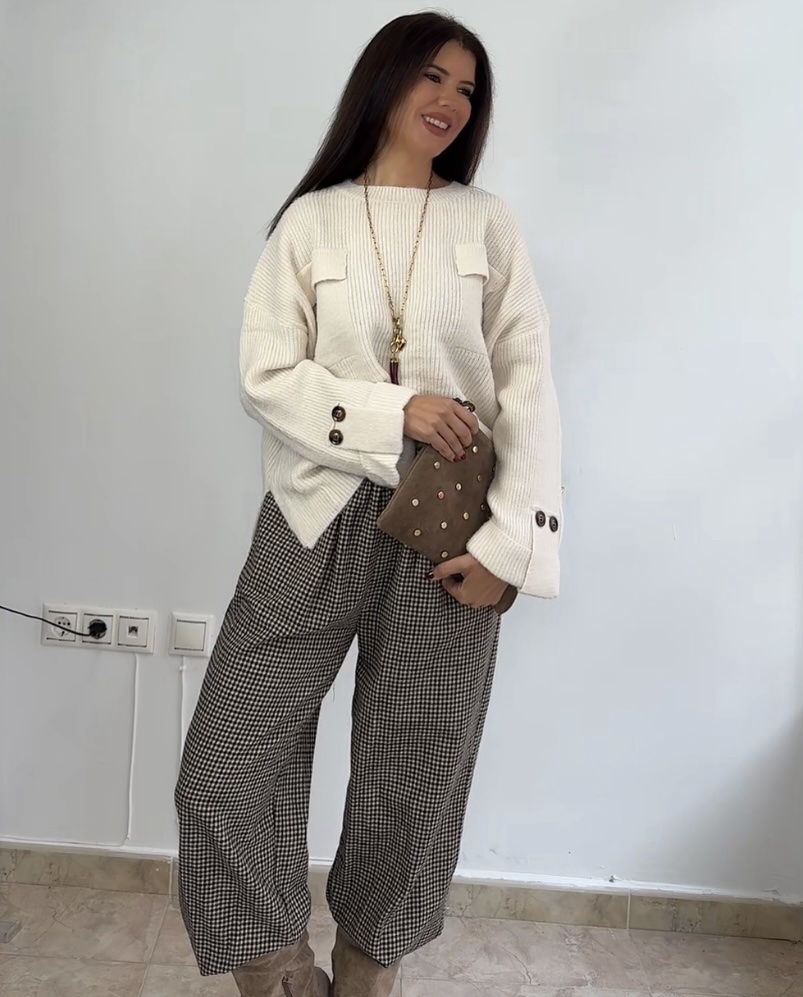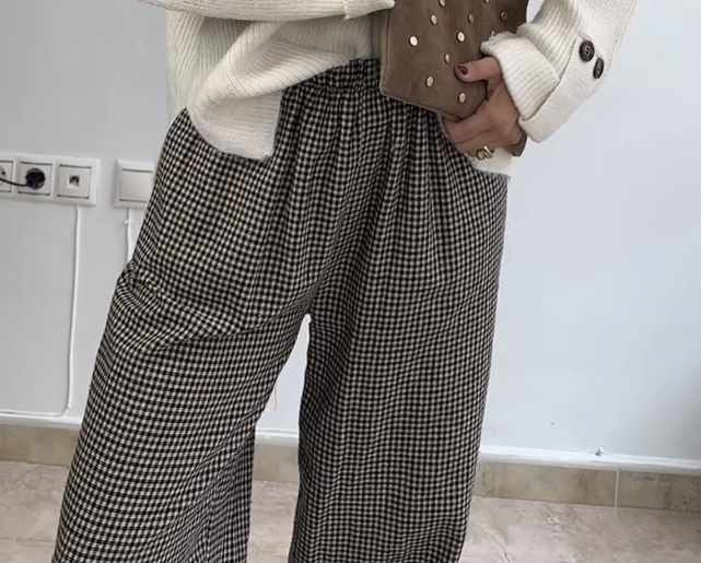 Estampado de cuadros en tonos marrones. Puños con goma elástica
