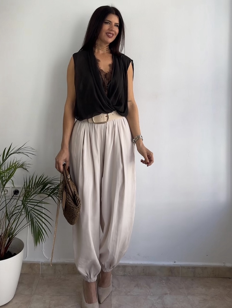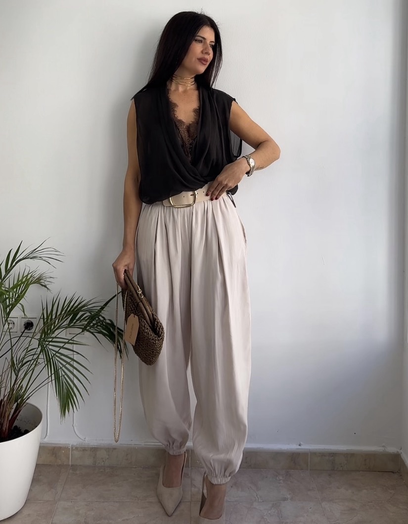 Pantalón bombacho beige cantidad