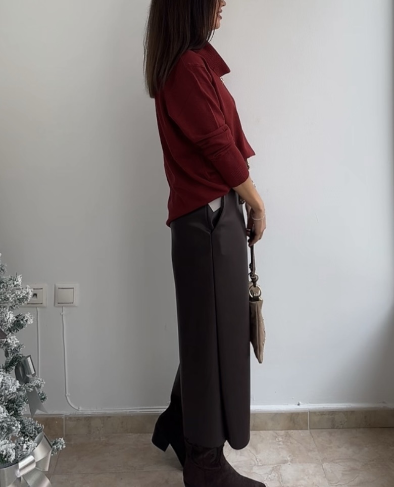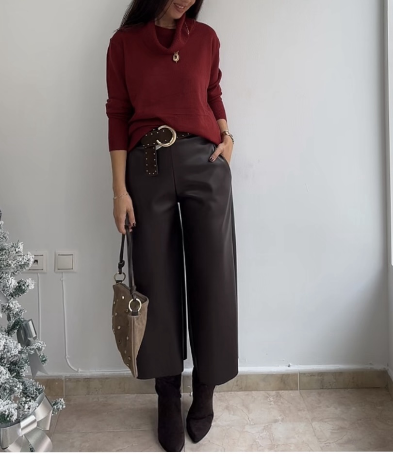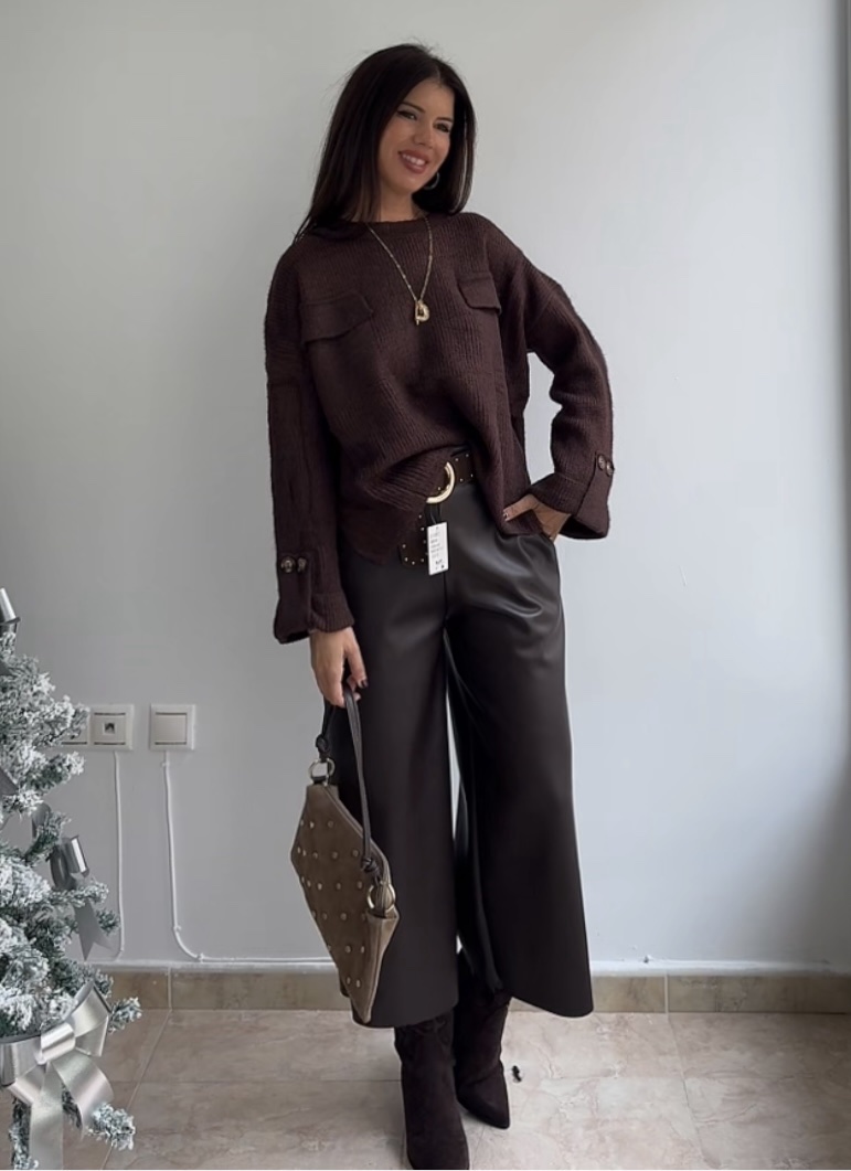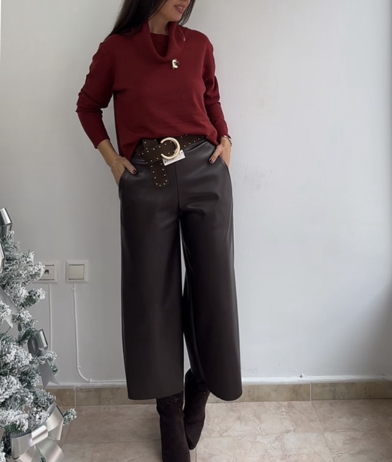 Pantalón efecto piel palazzo marrón cantidad