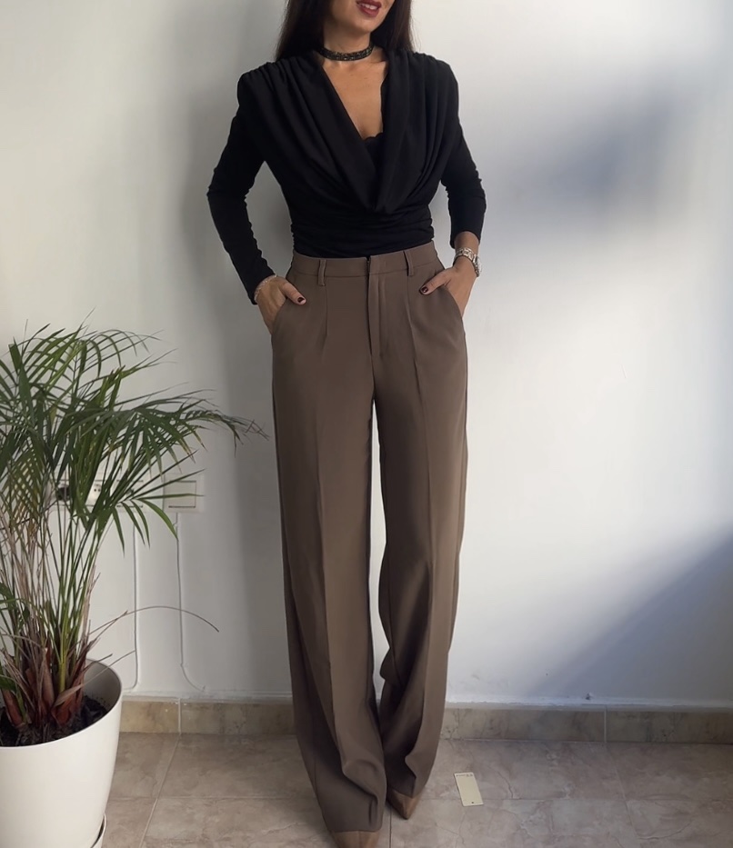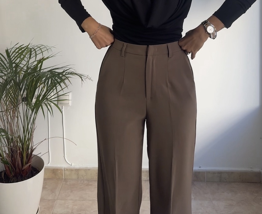 Cierre metálico y botón invisible para ajustar la cintura.